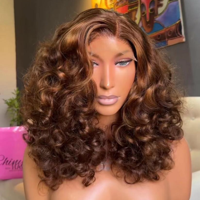 Perruque Bouclée Marron – Luxe & Volume Naturel